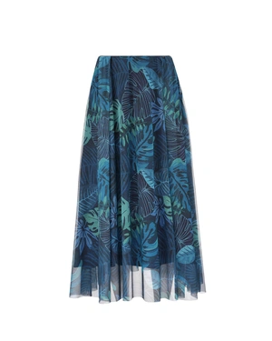 Long chiffon skirt with a tropical print, the model is lined and features pleats.