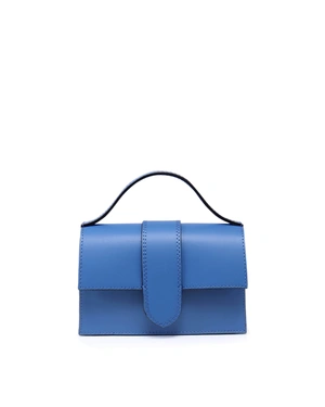 A structured design made of genuine leather, featuring a short handle and a removable long strap that allows it to be worn cross-body. The bag includes a small back pocket, one compartment, and a small interior pocket. Dimensions: 20x6x14 cm