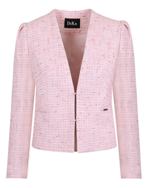 Fitted model, with puff sleeves, lapelless and deep V-neckline, button fastening, pearl type. Can be combined with a matching skirt from the collection.