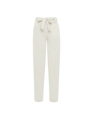 A classic trouser model, with a regular fit, ankle length, with a textile belt, the effect of the fabric is achieved with garment wash technology, which gives a unique look to any clothing, can be combined with a jacket from the collection