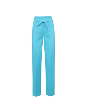 High-waist model, with textile belt, tie type, straight leg with crease and two side pockets, the fabric has a very slight elasticity