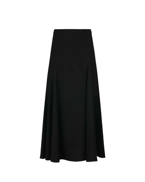 LONG BLACK VISCOSE SKIRT WITH A-LINE SILHOUETTE AND WAIST TIE