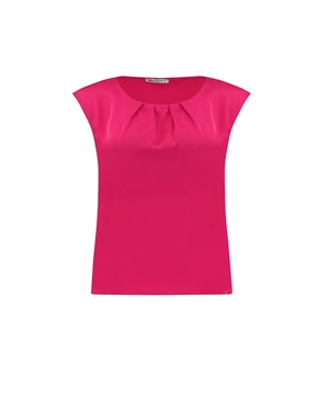 Blouse with a round neckline with pleating, sleeveless, regular fit, business style, an ideal model for the spring-summer season, can be paired with a matching blazer from the collection.
