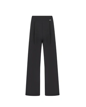 Straight-leg trousers with a high waist and loose-fitting legs, featuring a mousseline detail along the length of the sides. The cut offers fluidity of movement and creates the illusion of a longer silhouette.