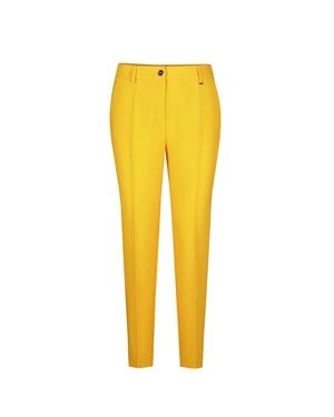 Classic trousers with tapered legs, a defined crease, ankle-length, belt loops at the waist, and Italian pockets. The trousers come in freesia color and can be paired with a matching blazer from the collection as well as various tops.
