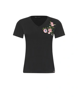 Classic short-sleeve t-shirt with a V-neck and regular fit, featuring a floral embroidery motif. The composition is lyocell and cotton, and the fabric has a slight stretch.