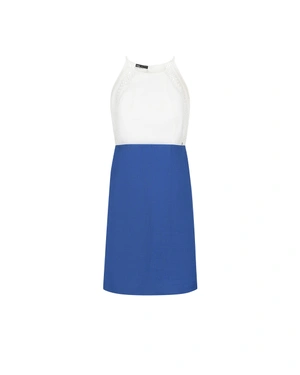 Sleeveless dress with a round neckline, shoulder detailing, regular fit, slight A-line silhouette, above the knee, in white and navy blue. Made of 100% linen with a viscose lining.