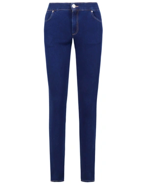 Blugi slim fit din denim albastru clasic, cu 5 buzunare, talie elastică la spate și conținut ridicat de bumbac