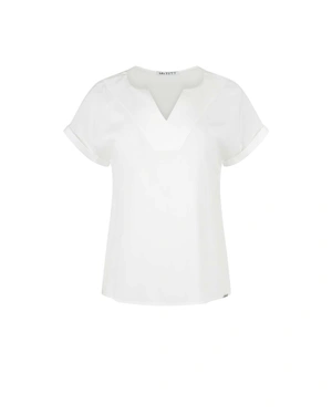 BLUZĂ ALBĂ DIN VISCOZĂ CU MÂNECI SCURTE ȘI DECOLTEU ÎN V