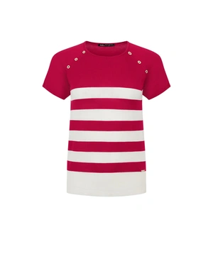 BLUZĂ TRICOTATĂ ÎN DUNGI VISINII CU NASTURI DECORATIVI