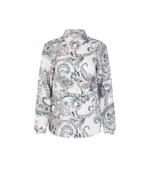 Cămașă cu mânecă lungă, cu guler și închidere la un singur piept, croială obișnuită și frumos motiv indian, realizată 100% viscoză.