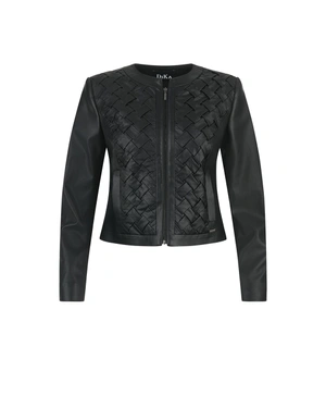 JACHETĂ ELEGANTĂ DIN PIELE ECOLOGICĂ NEAGRĂ CU BRETELE ÎMPLETITE