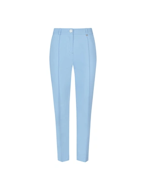 Pantaloni de vara albastru deschis, cu picior conic, cu tiv si buzunare italienesti, cu un procent mare de bumbac in compozitie