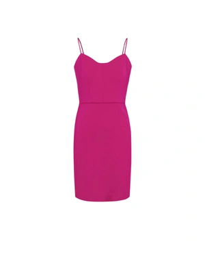 Rochie in bretele subtiri, ce urmeaza linia corpului, deasupra genunchiului, din raion, usor elastica