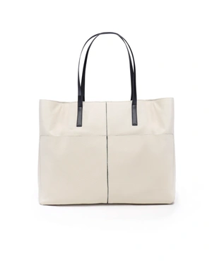 Geanta tote din piele naturala, cu manere contrastante, dimensiuni 37x3x30 cm