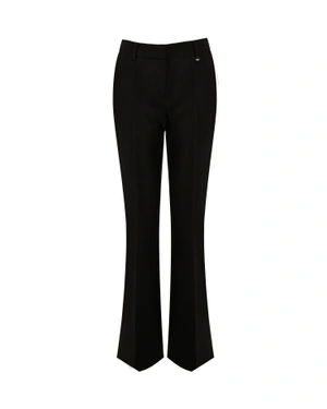 Pantalon drept, cu sifon, cu pense pentru curea in talie, tesatura are elasticitate